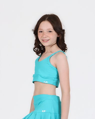 Este é um top esportivo infantil (cropped) da marca Siri Kids, que complementa perfeitamente o visual esportivo e provavelmente pertence à mesma coleção do vestido anterior, devido à cor.