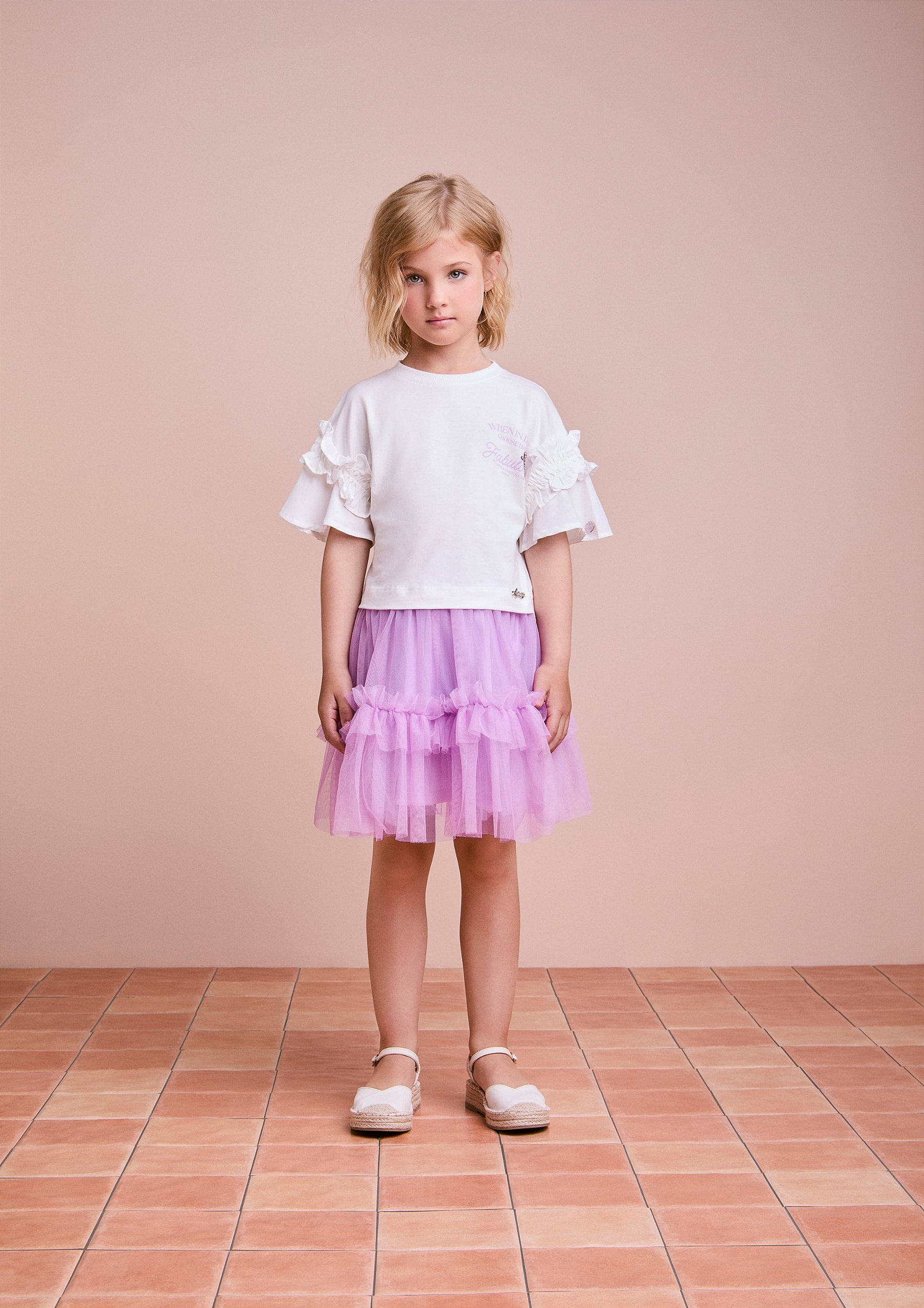 ✨ Conjunto verão - Saia de tule roxo e blusa branca ✨