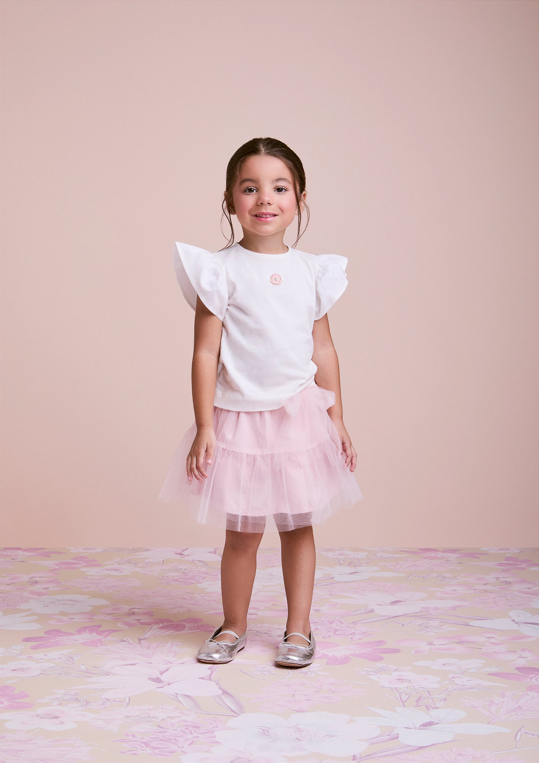 ✨ Conjunto verão saia de tule pink e blusa branca ✨