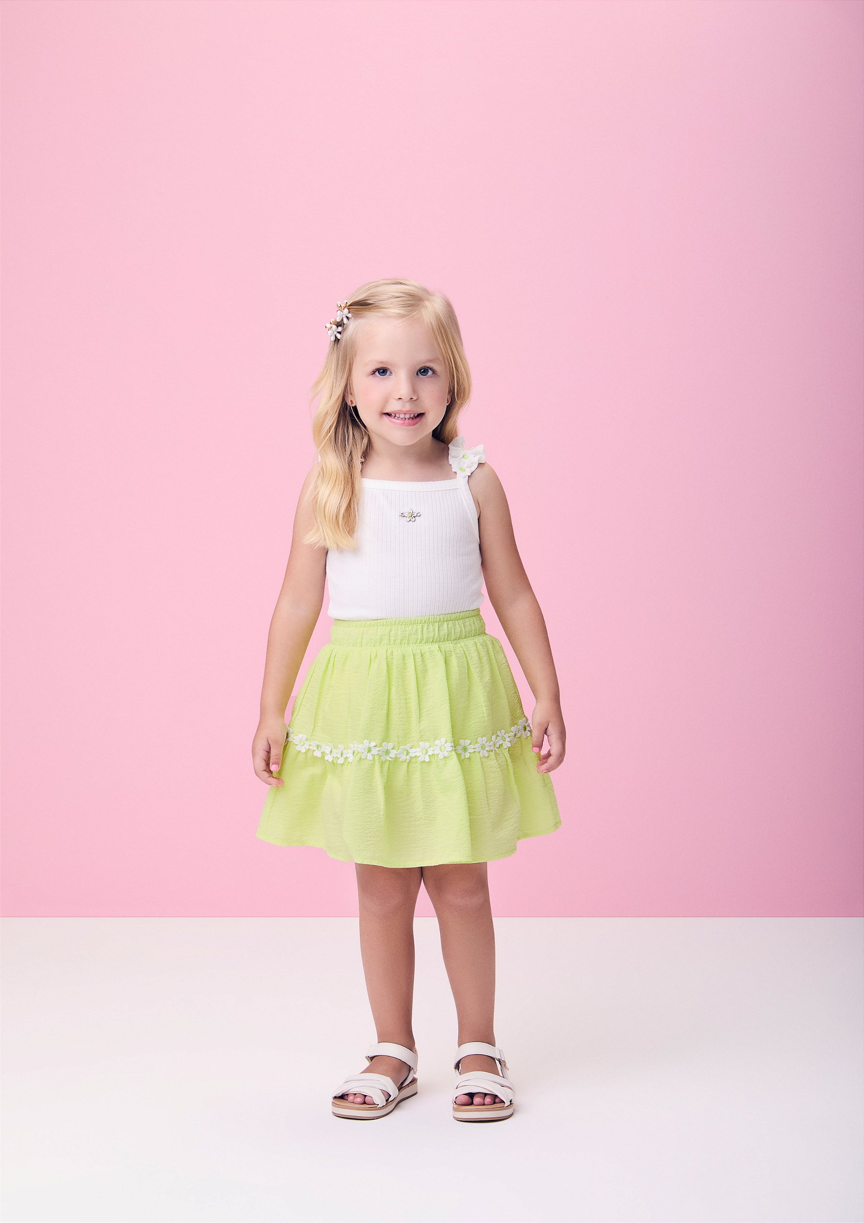 Conjunto short saia verde limão e regata branca | Momi