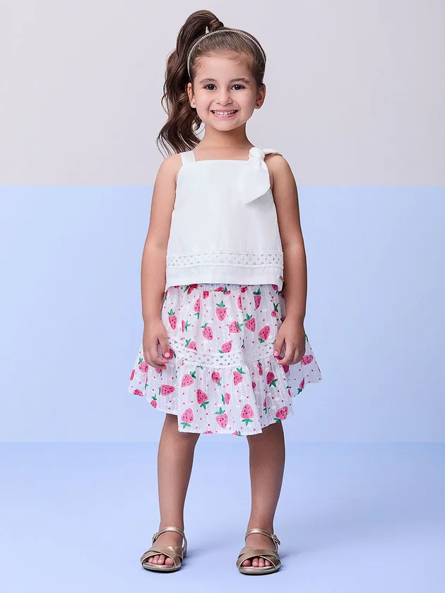 Este para um look delicado e cheio de charme, o conjunto de laise com morangos é a escolha perfeita. Os detalhes de morangos adicionam um toque de diversão, enquanto o tecido laise traz elegância. Ideal para um dia de brincadeiras ou para uma ocasião especial, garantindo sempre muito estilo. Ref.: J6101