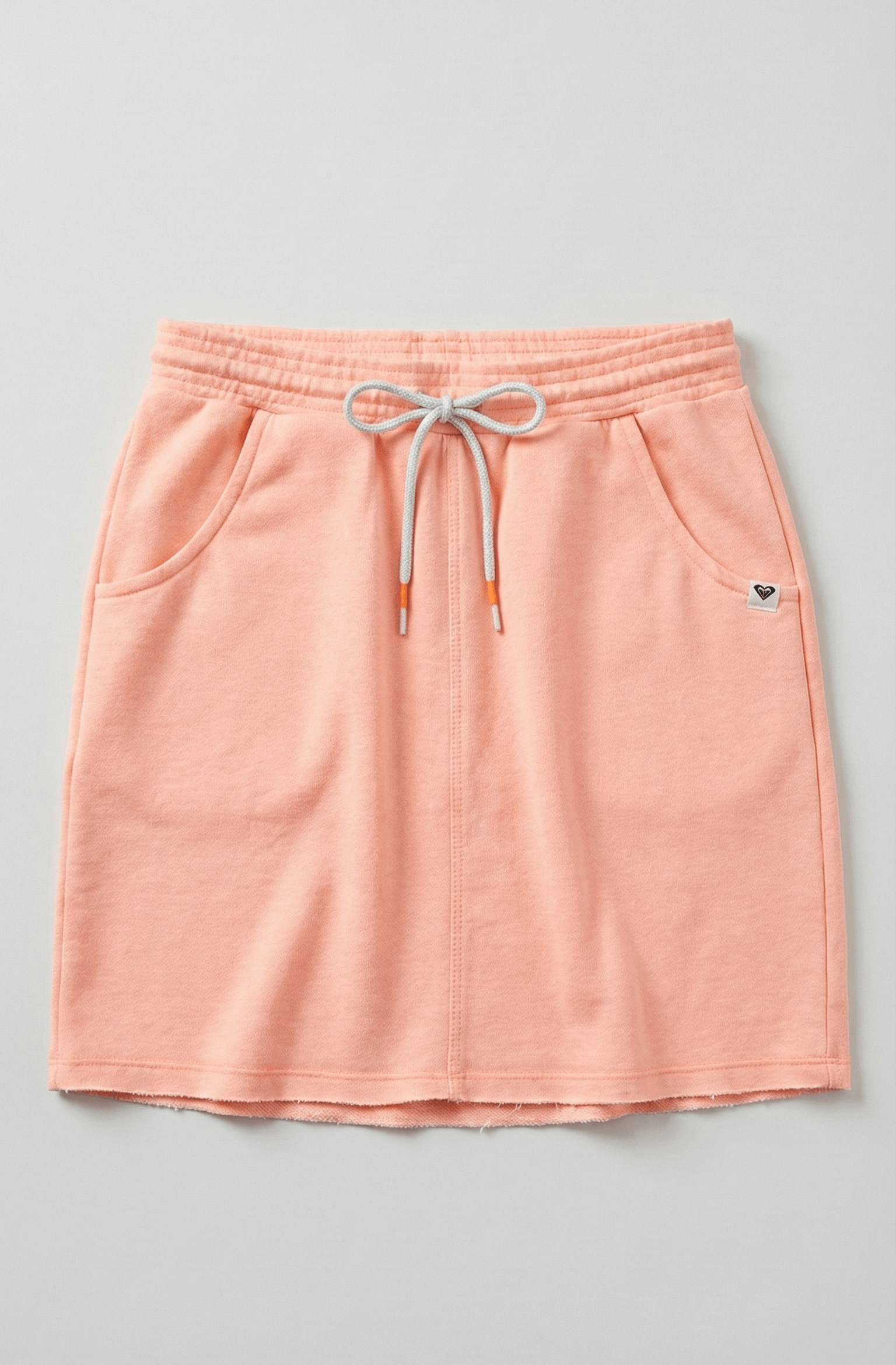 A cor vibrante (tom coral/salmão neon) é perfeita para destacar qualquer produção. O modelo conta com cós elástico reforçado e cordão funcional em tom contrastante (cinza com pontas laranja) para um ajuste perfeito na cintura. Possui bolsos laterais funcionais e uma costura central vertical que alonga a silhueta. O acabamento da barra é "a fio" (sem bainha costurada), proporcionando aquele visual destroyed moderno que as garotas adoram.