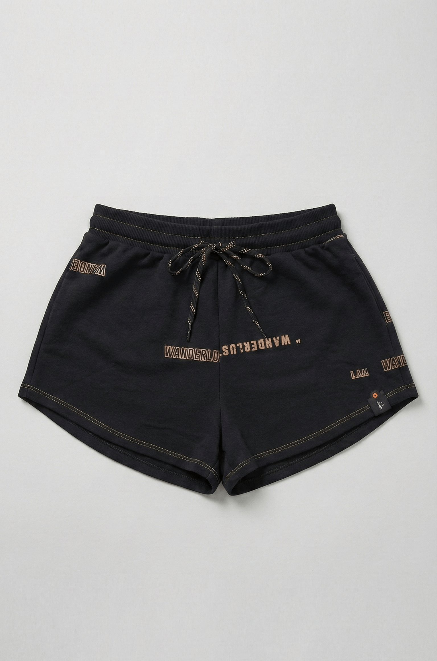 Short Moletom I [Am] Authoria Preto "Wanderlust" com Pespontos Contrastantes